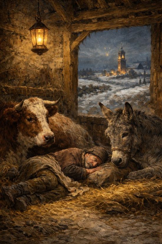Légendes, Superstitions Légendes, superstitions, croyances populaires, rites singuliers, faits insolites et mystérieux, récits légendaires émaillant l’Histoire de France Trésor des pierres de Plouhinec dans le Morbihan : son secretrévélé la veille de Noël (D’après « Autour du bon curé. Recueil de légendeset d’histoires » (par Arthur Loth), paru en 1891) Publié / Mis à jour le lundi 22 décembre 2025, par Redaction Temps de lecture estimé : 4 mn Comment un perfide mendiant, surprenant les confessions d’un bœuf et d’un âne doués de parole la nuit de Noël au sujet du trésor des pierres de Plouhinec, fut puni de vouloir se l’approprier au prix du sacrifice d’un jeune et pieux bouvier C’était la veille de Noël, à Plouhinec, près de Hennebont (Morbihan), la ferme était vide, maîtres et serviteurs assistaient pieusement à l’office et à la Messe de minuit. À travers les landes semées de neige, on entendait gaiement sonner les cloches. Seul, à l’étable, un mendiant dormait ou feignait de dormir entre le bœuf de la petite charrue et le vieil âne, fatigué de porter les touffes de bruyère ou d’ajonc séchées au soleil. Tout à coup le vieux pauvre entendit, avec surprise, l’âne et le bœuf s’entretenir, en bon breton, par-dessus sa tête ; et, se souvenant des traditions du pays, il se rappela que, d’après les anciens, en souvenir de l’hospitalité donnée à l’Enfant-Jésus par les ancêtres du bœuf et de l’âne, leurs descendants obtenaient une fois par an le don de la parole pendant la Messe de minuit. Seul, à l’étable, un mendiant dormait ou feignait de dormirentre le bœuf et le vieil âne. © Crédit illustration : Araghorn Le mécréant, fin et rusé, ne portait point vainement sa besace et sa jambe torte de village en village, de métairie en métairie : il se tint coi pour ne pas imposer silence à ses innocents voisins. — Si je n’étais pas attaché, dit le bœuf, j’irais me promener dans la lande pour être libre une fois ; j’y rencontrerais peut-être Bénadik, le garçon de Pluvigné, à qui je voudrais bien dire quelque chose ! — Quoi donc ? fit l’âne, abruti et harassé par les mauvais traitements. — Ah ! tu n’aimes pas Bénadik comme moi ; ce vaurien de Pélo qui te mène t’a brisé de coups, mais le maître n’aura jamais valet pareil à Bénadik ; il me parle comme à un chrétien ; s’il me pique de l’aiguillon, je le sens à peine ; il ne pense qu’à faire le bien et à éviter le mal ; mais il regarde parfois Marianik, la fille du maître, et on le renverra ; s’il savait ce que je veux lui dire, il serait assez riche pour acheter la lande tout entière, et le maître le recevrait chapeau bas ! — Tu veux dire, répliqua lentement l’âne, qu’il pourrait ramasser le trésor des pierres de Plouhinec ! S’il avait l’herbe de la Croix, le trèfle à cinq feuilles, cela pourrait lui servir quand les pierres iront boire à l’Intel, mais cela n’arrive que tous les cent ans, et il ne vient pas ! — Enfin, reprit pensivement le bœuf, il faudrait encore un chrétien baptisé qui donnât sa vie pour être écrasé par les pierres, quand elles reviendront ! Mais il ne voudrait jamais laisser tuer quelqu’un pour lui ; je crois que s’il rentrait, mieux vaudrait me taire ! L’âne s’endormit. Un terrible désir venait de s’emparer du cœur du mendiant : il savait où se trouvait l’herbe magique, là où le myrte fleurit en hiver et où la violette sort de terre en février ; mais où trouver le chrétien baptisé qui donnerait sa vie pour la sienne ? Et les sacs d’écus, les rouleaux d’or dansaient follement devant les yeux du misérable, tandis qu’il se demandait encore tout bas s’il ne pourrait tromper un homme et l’entraîner à la mort avec l’aide infernale de Satan. Il s’endormit, rêva des monceaux de diamants, des piles d’or, des rivières d’écus, et vit Bénadik changer la litière des animaux et le réveillant par son bruit. Quand il quitta la métairie, la besace bien garnie, il marcha droit au dolmen de Plouhinec, il contempla les pierres irrégulières et clairsemées comme une poignée de braves demeurés debout sur le champ de bataille, puis s’enfonça dans la lande neigeuse. Quatre nuits s’étaient écoulées ; à l’aube de la dernière, Scriven le mendiant reparut ; à sa grande surprise, il vit Bénadik frappant d’un ciseau et d’un marteau la plus grande des pierres de Plouhinec ; de grosses larmes roulaient dans ses yeux, on l’avait renvoyé brutalement en disant : « Un gars qui n’a pas vingt blancs ne songe pas à épouser ma fille ! » Bénadik avait baissé humblement la tête ; il avait, de ses gages de Noël, vêtu chaudement sa vieille mère, mis son offrande dans la bourse du recteur, et pour se consoler de quitter le pays et Marianik, il creusait une large croix dans la pierre. — Que fais-tu là ? demanda le mendiant. — Le maître me renvoie, répondit le bouvier, mais avant de partir j’ai voulu, ayant une croix dans le cœur, graver le signe de mon salut sur cette pierre, où l’on dit que l’on faisait couler le sang des hommes pour le service du Diable ; maintenant elle portera la croix ! Alignements du Gueldro, à Plouhinec (Morbihan) — Écoute, fit sourdement le mendiant, que me donnerais-tu si je te faisais assez riche pour te marier demain, pour si haut que tu voulusses regarder ? Bénadik étouffa un soupir. Scriven continua : — Les pierres que voici cachent un immense trésor : ce soir, à minuit, elles iront boire à l’Intel ; veux-tu m’aider ? À leur retour, par mon saint Patron, nous n’aurons plus besoin de baisser la tête devant personne ! — Ah ! s’écria le jeune homme, si tu me fais assez riche pour obtenir Marianik, sauf ma part de Paradis, garde tout le reste, je ne te demande plus rien ! Une joie sombre illumina le visage du mendiant. « Sois ici à minuit, dit-i
