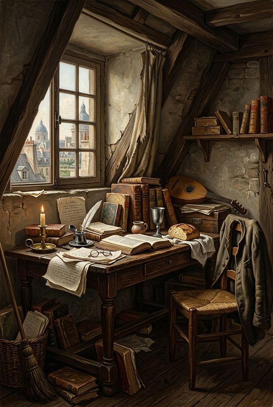 Lorsque paraît le premier livre des Fables (1668), La Fontaine occupe par ailleurs un logement au sein du Palais du Luxembourg à Paris, y servant en qualité de « gentilhomme servant » auprès de la duchesse douairière d’Orléans, Marguerite de Lorraine. Bien qu’il vive sous le toit d’une princesse, le fabuliste n’occupe pas une suite royale. Son logement de fonction est constitué d’une pièce ou d’un petit appartement situé dans les ailes latérales ou sous les combles (les mansardes), le confort étant sommaire : une cheminée pour le chauffage, des parquets de chêne, et des fenêtres à petits carreaux.