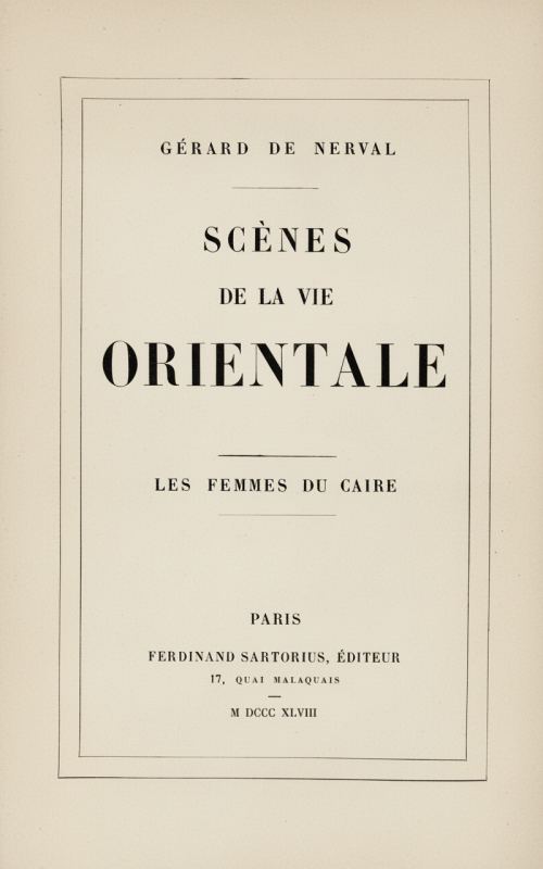 Couverture de Scènes de la vie orientale, par Gérard de Nerval (1848)