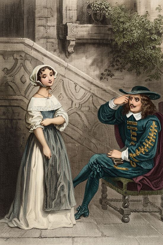 Agnès avec son tuteur Arnolphe. Gravure du XIXe siècle colorisée ultérieurement