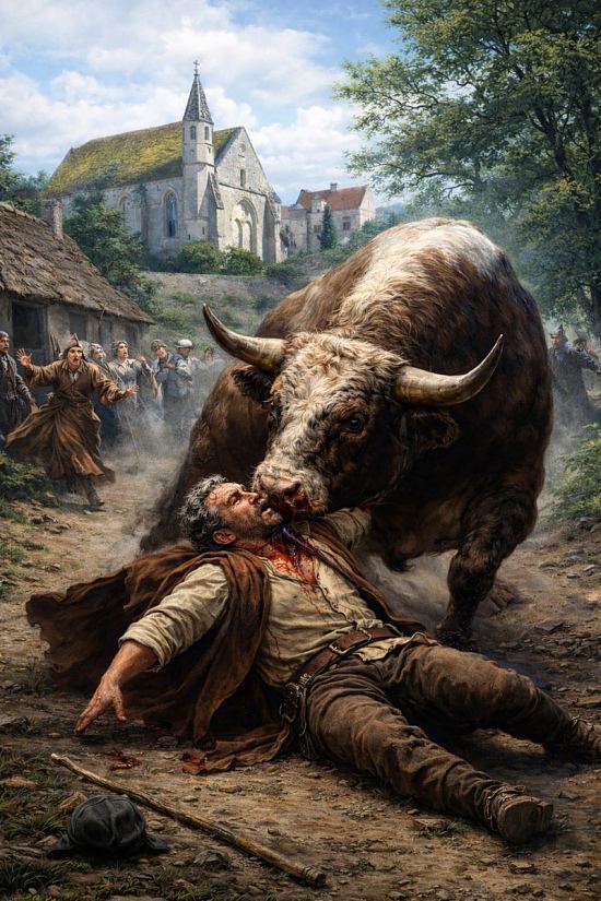 L’abbé Carlier, prieur d’Andrésy, rend compte, dans son Histoire du duché de Valois, d’un procès intenté à un taureau et débouchant sur son exécution suivie d’un appel confirmant l’équité du jugement